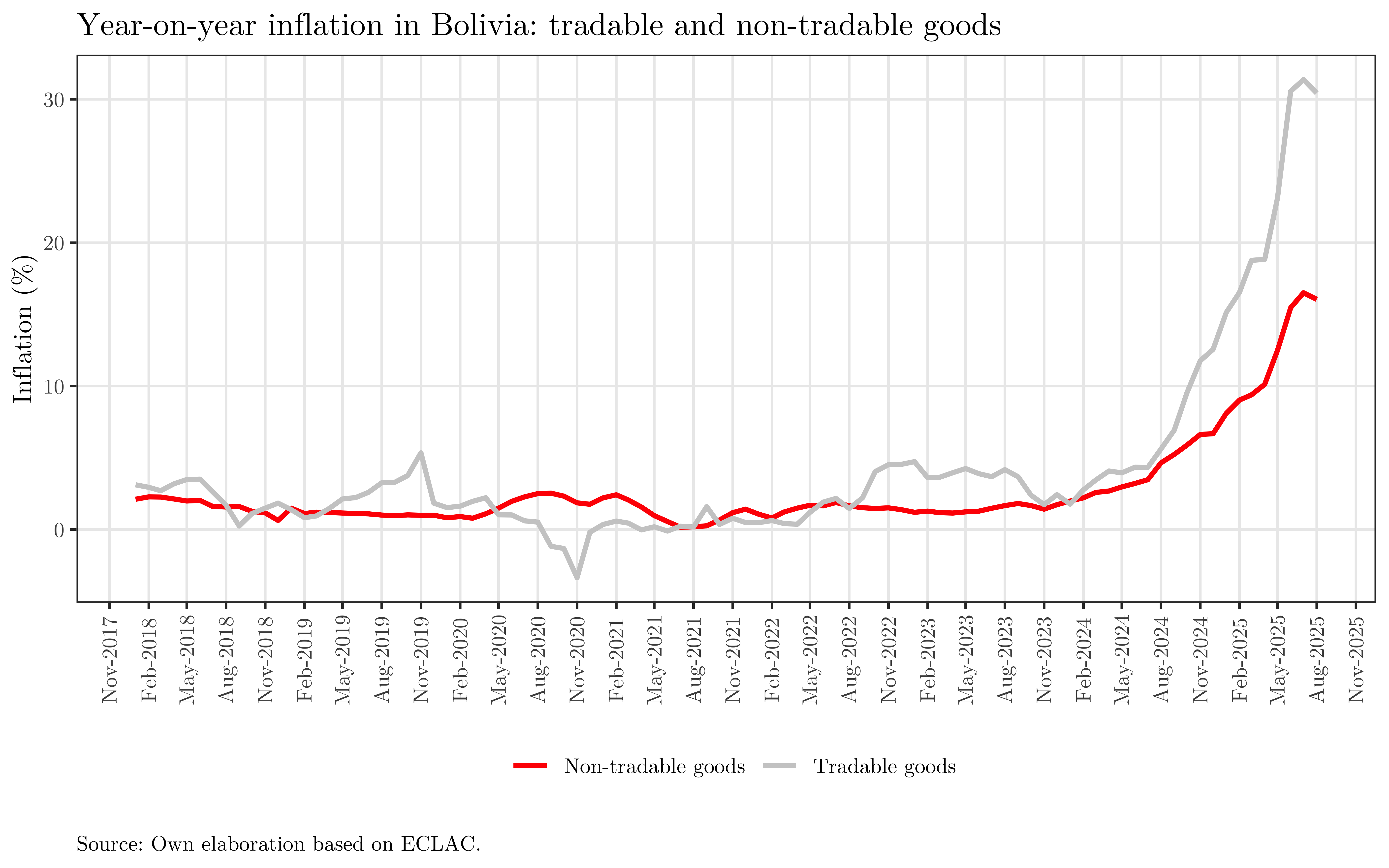 Now, let’s plot the inflation of tradable and non-tradable goods in Bolivia: