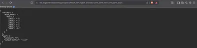 Para que se entienda la idea del endpoint basta colocar la siguiente URL en el navegador web de su preferencia https://www.imf.org/external/datamapper/api/v1/indicators. Esto nos devolverá texto plano en formato JSON con la lista de indicadores disponibles: