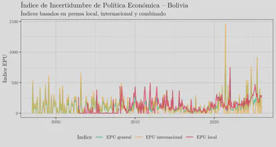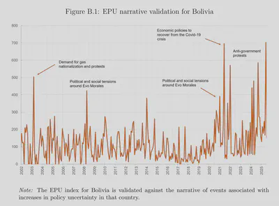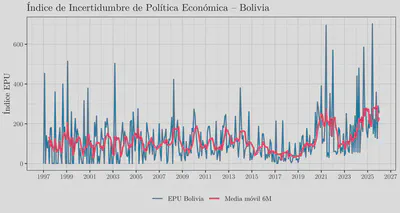 Hace unos días me llamó la atención un post de LinkedIn de Javier Perez del Banco de España en el que se anunciaba la publicación de índices de Economic Policy Uncertainty (EPU) para varios países de Latinoamérica, entre ellos Bolivia. El índice se desarrolla en Andres-Escayola et al. (2025).